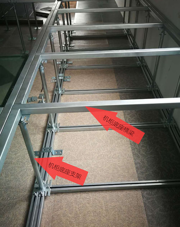 二.)產(chǎn)品的組成:1)機(jī)柜底座橫梁、 2)機(jī)柜底座支架、3)T型鎖緊螺絲、4)架空地板連接件、5)機(jī)柜底座固定件